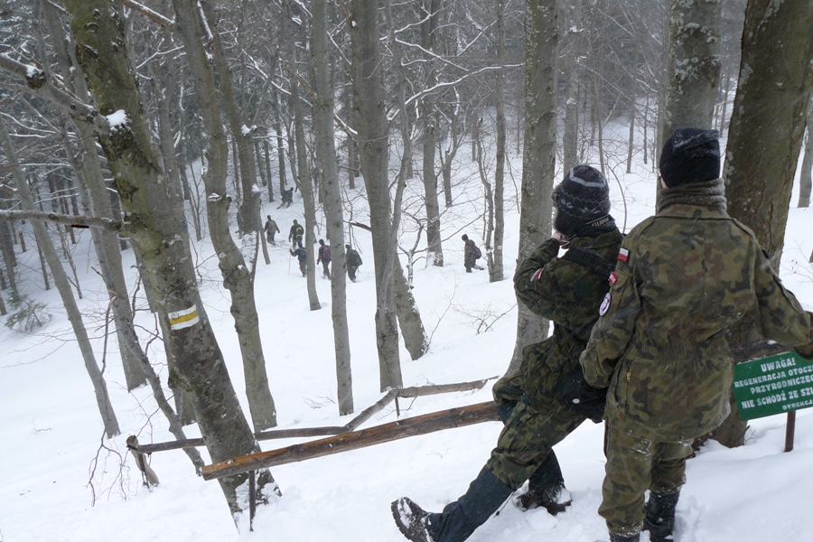 W Górnym Starym Siole, skąd prowadzi szlak na Smerek, przywitała nas słoneczna pogoda, więc ze zdziwieniem przyjąłem informację z domu, że w Rzeszowie prószy śnieg. W marszu przeszkadzały jedynie zaspy, dochodzące miejscami nawet do metra głębokości, a także miejsca, gdzie śnieg był bardzo wyślizgany. Ponieważ ksiądz kapelan, który miał wędrować z nami, dzień wcześniej się rozchorował, rozważania Drogi Krzyżowej prowadzili sami strzelcy. Na trasie doszlusowaliśmy do grupy z księdzem, zorganizowanej przez PTTK z Sanoka, i dalej słuchaliśmy już rozważań prowadzonych przez kapłana.