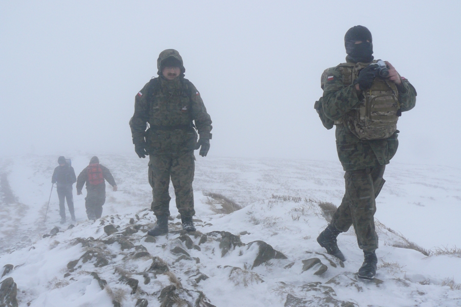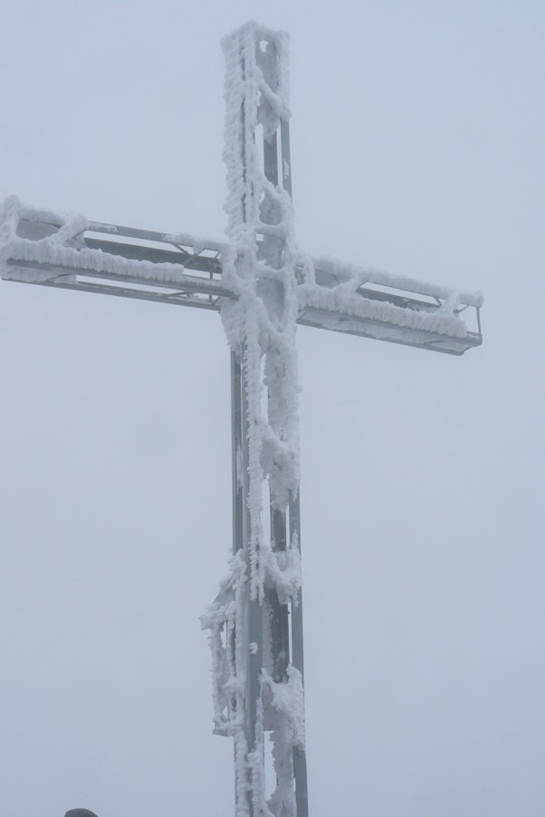 Pogoda zaczęła się szybko pogarszać. Prószyć zaczęło, gdy byliśmy jeszcze w lesie. Gdy wyszliśmy z lasu na otwartą przestrzeń, przywitała nas mgła (widoczność spadła do kilku metrów), silny wiatr i zmrożony śnieg sieczący po twarzy. Powyżej przełęczy pod krzyżem na Smereku widoczność była już tak słaba, że gdyby nie jeden z pielgrzymów, który nas zawrócił, wraz z mł. insp. Jackiem Magdoniem ze „Strzelca” zeszlibyśmy ze szlaku. Warunki pogodowe stały się na tyle ekstremalne, że przy krzyżu na Smereku zatrzymaliśmy się tylko na 10 minut, po czym cała grupa szybko i szczęśliwie zeszła do autokaru. Po drodze insp. Magdoń połączył się telefonicznie ze swoimi znajomymi, którzy akurat schodzili z… Tarnicy. Było trochę śmiechu, bo ktoś na internecie w telefonie komórkowym przeczytał, że straż Bieszczadzkiego Parku Narodowego nie wpuszcza pielgrzymów na Tarnicę.