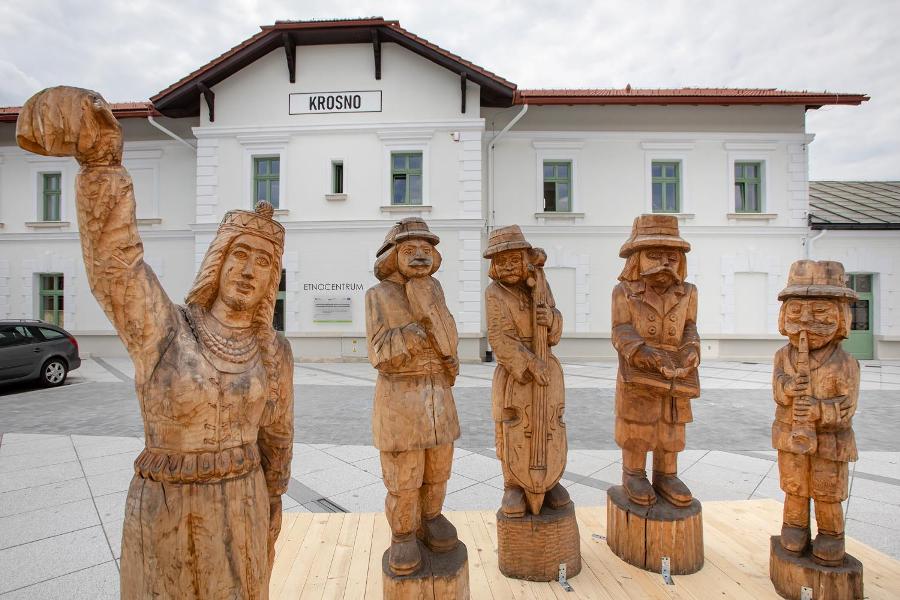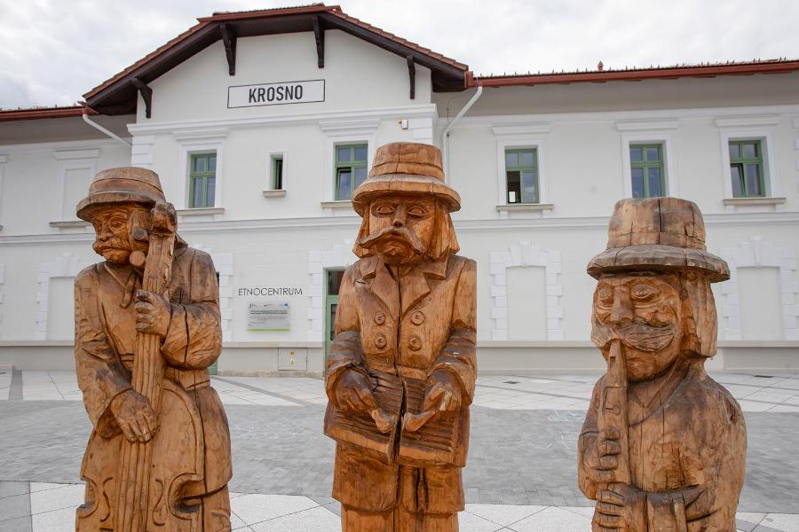 Pięknie odremontowany budynek dawnego dworca kolejowego w Krośnie nosi obecnie nazwę Etnocentrum Ziemi Krośnieńskiej. To unikalne miejsce spotkań z kulturą ludową i tradycyjną. Dawną krośnieńską wieś udało się tu nie tylko ocalić od zapomnienia, ale i zachować w żywej formie.