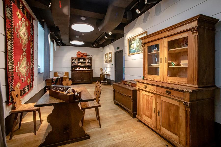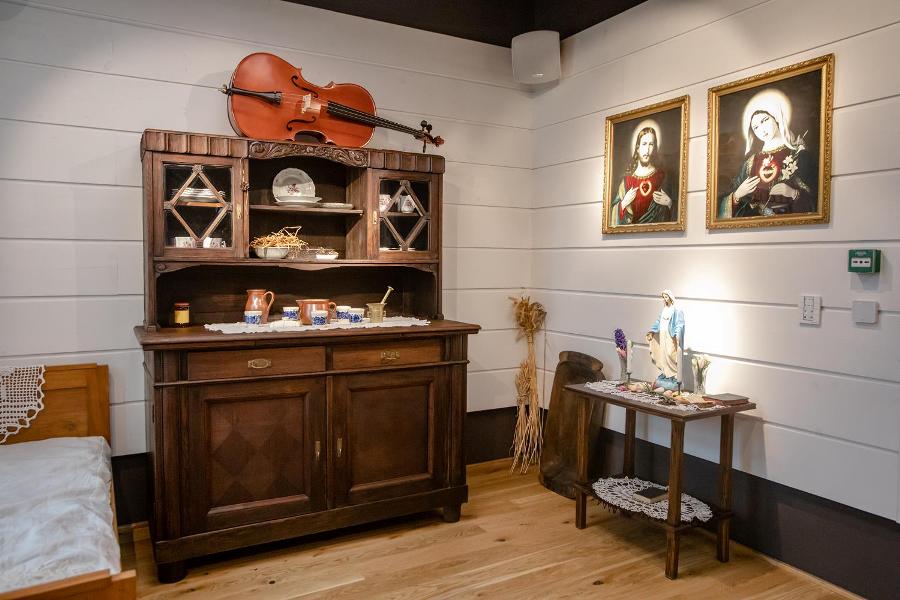 Z tymi elementami kontrastuje wystrój dostosowany do obecnej funkcji budynku. Jedno z pomieszczeń umeblowane jest tak, jak wnętrze chaty. Tradycyjny kredens, domowy ołtarzyk, dwie malowane skrzynie posażne, jesionowe łóżko… W izbie złożono tradycyjne instrumenty ludowe: cymbały, lirę korbową, basy. Są one czymś więcej niż eksponatami. W Etnocentrum odbywają się bowiem potańcówki z udziałem znakomitych kapel, takich jak „Kurasie” z Lubziny, „Trzcinicoki” z Trzcinicyczy „C.K. Kapela” z Przemyskiego, oraz spotkania, w trakcie których można nauczyć się podstaw muzykanctwa od samych mistrzów.
