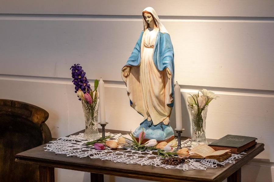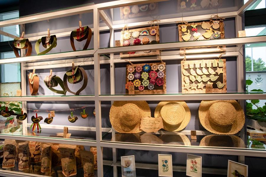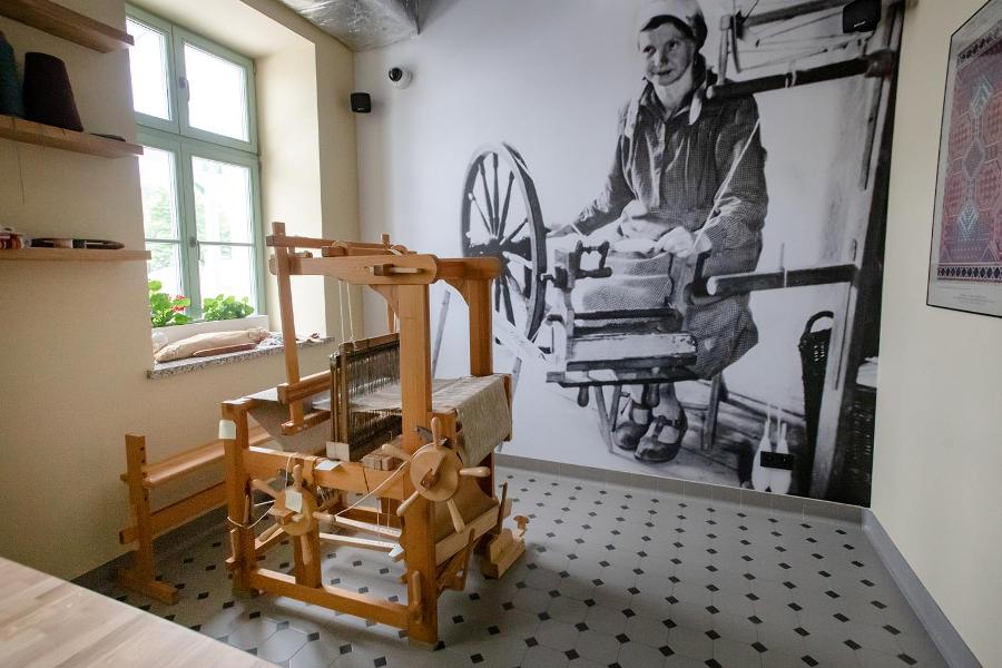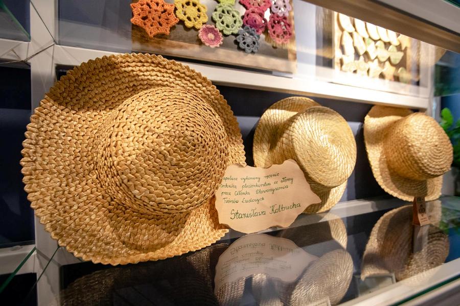 W sali ekspozycyjnej oglądamy wystawę ludowych makatek. Te stare różnią się od współczesnych tylko odcieniem bieli haftowanego materiału. Wśród tradycyjnych motywów pojawia się jeden współczesny: to hasło ekologiczne.