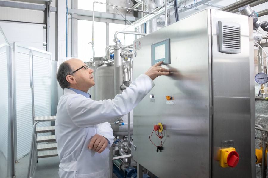 Arkadiusz Trefon przy prototypowej linii produkcyjnej Vianat. Fot. Tadeusz Poźniak
