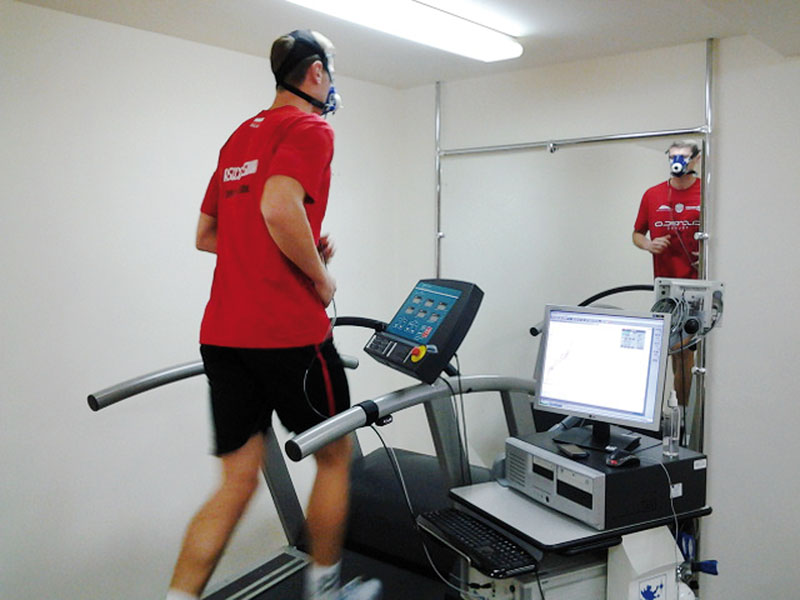 Badanie wysiłkowe to mierzenie parametrów organizmu w czasie wysiłku. Nasze laboratorium opiera się na włoskim systemie diagnostycznym Quark b2, dzięki któremu możemy oznaczyć zużycie tlenu przez organizm podczas wysiłku, określić spirometrię, a także przeprowadzić test podstawowej przemiany materii. Dodatkowo w czasie badania monitorujemy pracę serca przy pomocy EKG i pulsometru. Na podstawie zebranych parametrów system może wygenerować wiele danych potrzebnych w planowaniu i prowadzeniu treningu. Dla potrzeb sportu określamy progi metaboliczne: próg anaerobowy AT i próg kompensacji oddechowej RC, mierzymy wentylację płuc VE, oznaczamy VO2max czyli maksymalną ilość pochłaniania tlenu. Te dane informują o stanie zdrowia sportowca, jego możliwościach i potrzebach treningowych, a także dostarczają wskazówek dotyczących żywienia. Próba wysiłkowa to cenne informacje dla trenera i zawodnika.