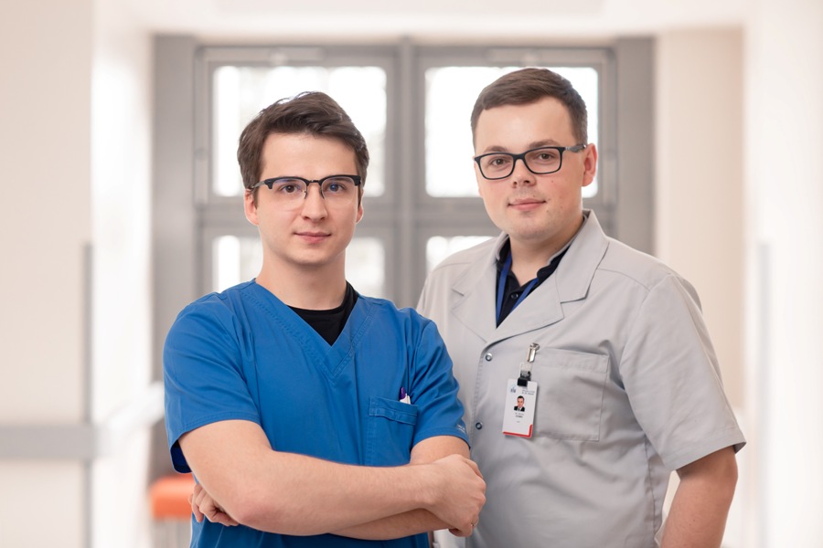 Lek.med. Maciej Baran, lek. med. Dariusz Dziubek z Oddziału Neurologii NTM Szpitala Specjalistycznego im. Świętej Rodziny w Rudnej Małej