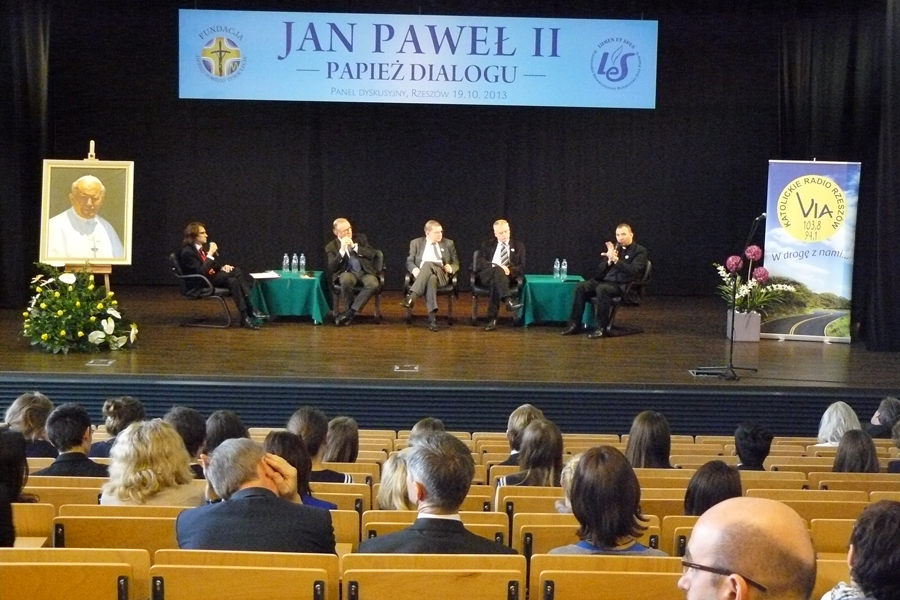 W panelu dyskusyjnym, zorganizowanym przez Rzeszowskie Stowarzyszenie Dziedzictwo Jana Pawła II „Lumen et spes”, Fundację Dzieło Nowego Tysiąclecia, Podkarpacką Rodzinę Szkół im. Jana Pawła II i Instytut Teologiczno-Pastoralny, wystąpili: prof. Krzysztof Zanussi, znany reżyser filmowy; dr Stanisław Sławiński, pedagog, były wiceminister edukacji narodowej; ks. Dariusz Kowalczyk z zarządu Fundacji Dzieło Nowego Tysiąclecia oraz – w zastępstwie chorej dr Ewy Czaczkowskiej, publicystki - prof. Aleksander Bobko, rektor Uniwersytetu Rzeszowskiego.