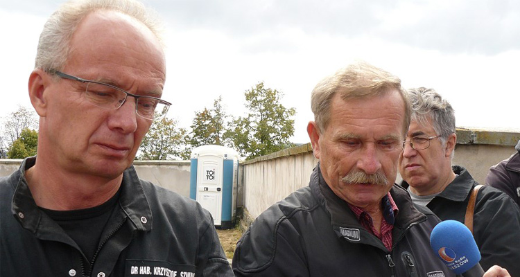 Konferencja prasowa na Zamku Lubomirskich w Rzeszowie, wrzesień 2015. Po prawej Wojciech Koba, syn Władysława Koby, po lewej szef Zespołu Samodzielnego Wydziału Poszukiwań IPN, Krzysztof Szwagrzyk. Fot. Jaromir Kwiatkowski