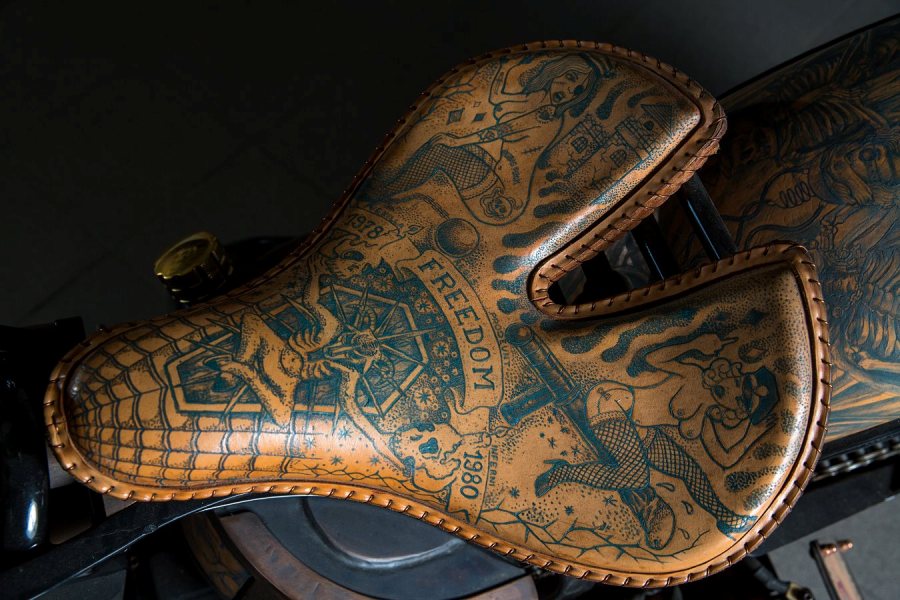 Na pomysł wytatuowanego motocykla wpadł wiele lat temu. Wykonywał tatuaże samodzielnie zrobioną maszynką – struny od gitary, silniczek od walkmana, igła, do tego własne pomysły. – Siedząc w szkole z internatem, ma się nieograniczoną ilość czasu i brak pieniędzy, więc wymyśliłem sobie taki sposób na dorabianie, bo zawsze umiałem sobie dawać radę – opowiada. – Tatuowałem znajomych. Świetna szkoła życia. Z kolegą uczyliśmy się tatuować na prosiakach. Karmiliśmy je wiśniami z domowego wina, żeby były spokojne. Rano na podwórko wybiegało stado wytatuowane w płomienie, czachy itp. dzieła. Przez te prosiaki pomyślałem o wytatuowanej skórze na motocyklu. Przez kilkanaście lat śledziłem motocyklowe media, czekając, kiedy ktoś to zrobi. Ale jakoś nikt na to nie wpadł. Po Behemocie było więc oczywiste, że zabiorę się za Recydywę.