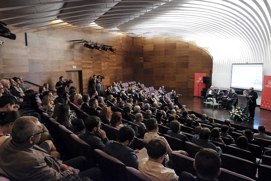 Od lewej: prof. Andrzej Friszke, prof. Aleksander Hall, Henryk Woźniakowski, o.Maciej Zięba i Andrzej Brzeziecki. Fot. Patryk Ogorzałek