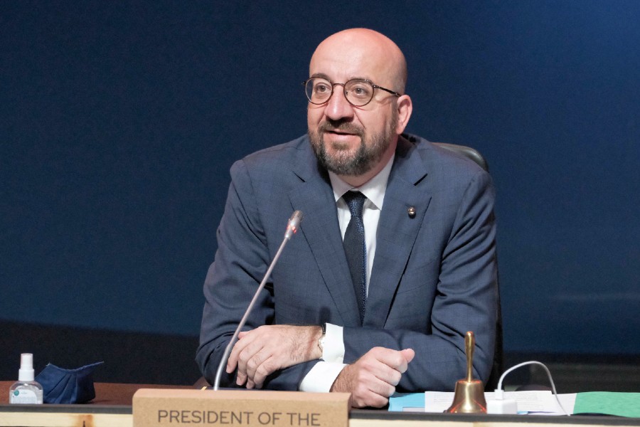 Przewodniczący Rady Europejskiej Charles Michel podczas nieformalnego posiedzenia szefów państw i rządów Unii Europejskiej w Porto, 8 bm. Fot. Mateusz Marek/PAP