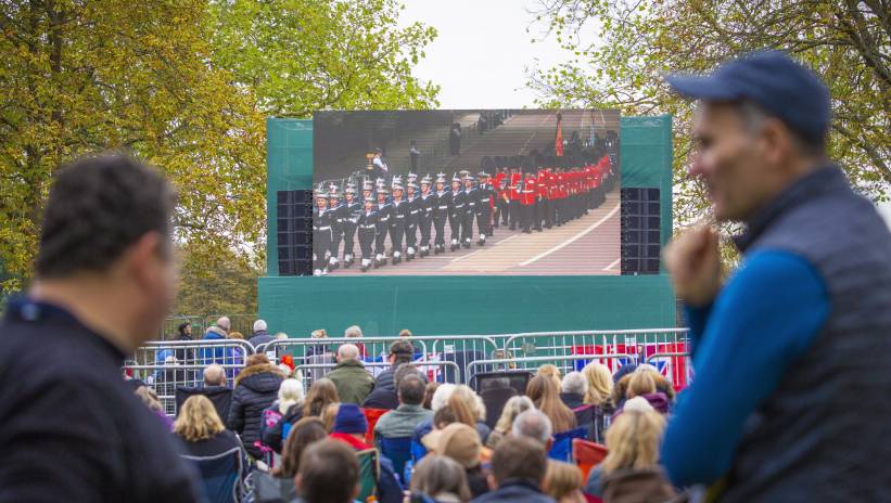 Na czele konduktu szła orkiestra wojskowa szkockich i irlandzkich regimentów, następnie członkowie Brygady Gurkhów i członkowie Royal Air Force. Lawetę działa, na której znajduje się trumna, ciągęło 98 marynarzy Royal Navy, zaś za lawetą szło kolejnych 40, mających za zadanie hamować.