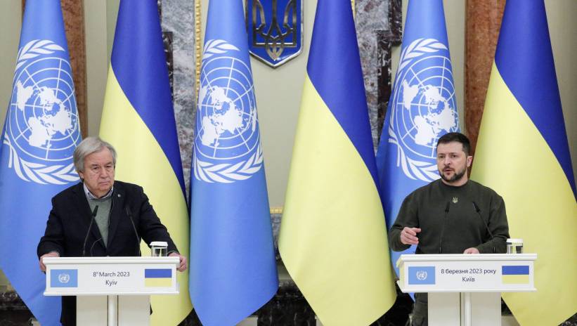 Właśnie teraz, właśnie na Ukrainie rozstrzyga się przyszłość Organizacji Narodów Zjednoczonych i rola ONZ w świecie - podkreślił w środę w Kijowie prezydent Ukrainy Wołodymyr Zełenski podczas wspólnej konferencji prasowej z sekretarzem generalnym ONZ Antonio Guterresem.